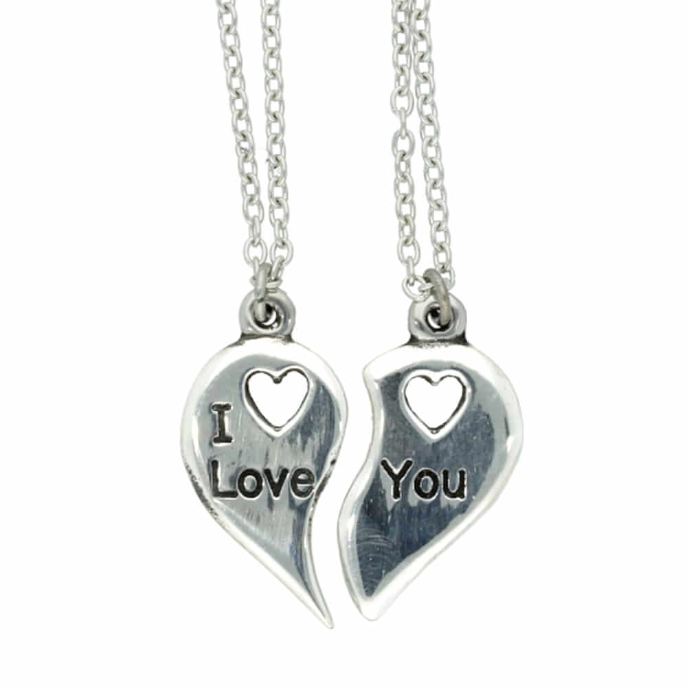Design: Solid Pewter heart pendants divided in two with the words ‘I Love You’ engraved.
