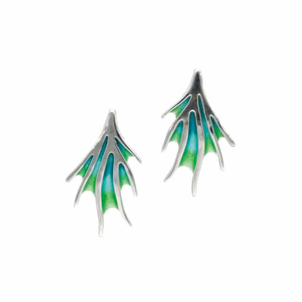 Glass Mor Samphire earrings – Sterling silver studs, hand-enamelled with blue-green colours of the sea.