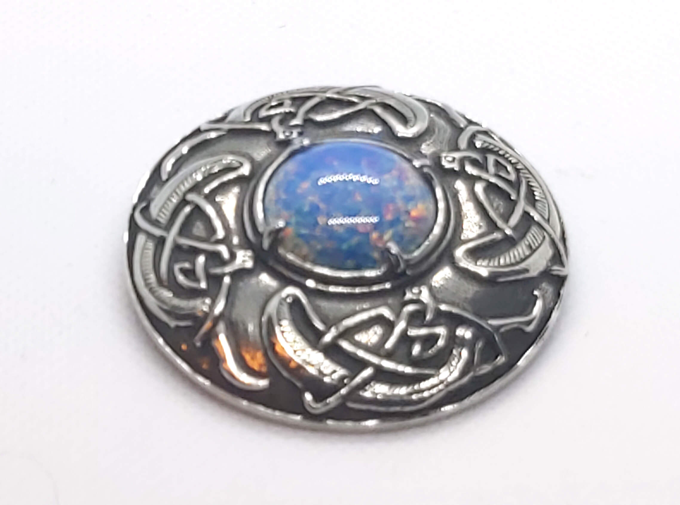 Viking schild broche met opalised glas (MBP728O)