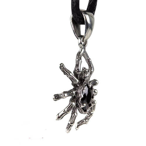 Zilveren spin hanger met zwarte steen